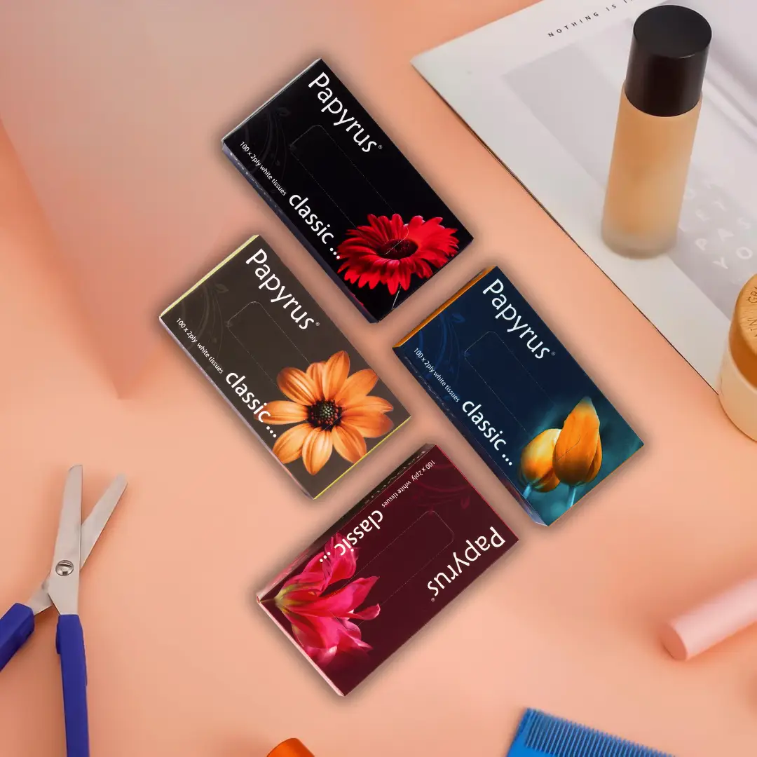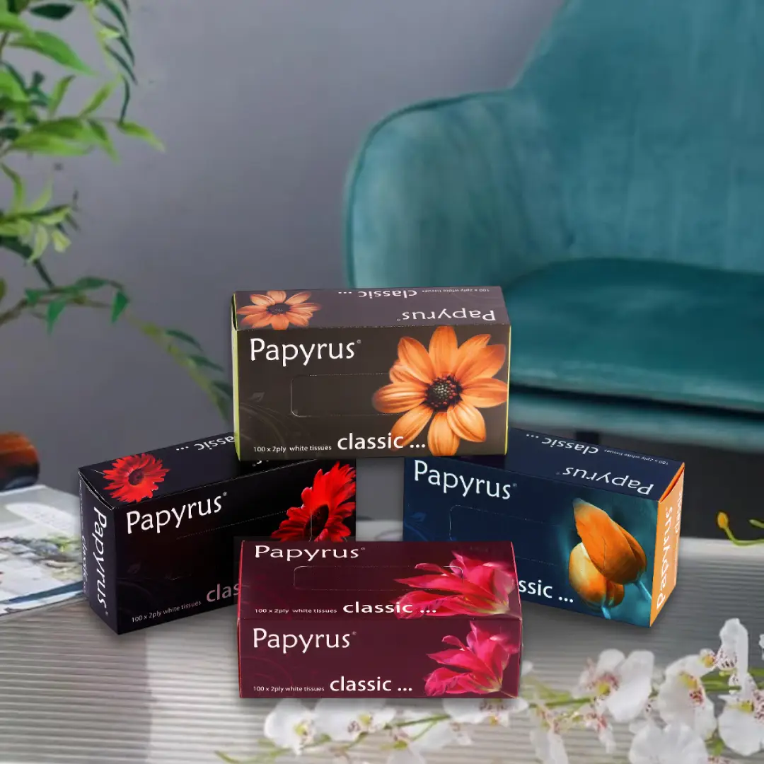 Premium Papyrus Classic 100 Pulls Face Tissues are intended for daily use, hygiene, and comfort, as well as convenience.